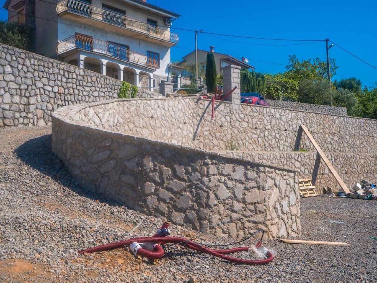 Radili smo na uređenju Riječkog rotora na Škurinjama, gdje smo izgradili potporne zidove od kamena, te uredili rubove ruba kolnika koji su sastavni dio prometnice.