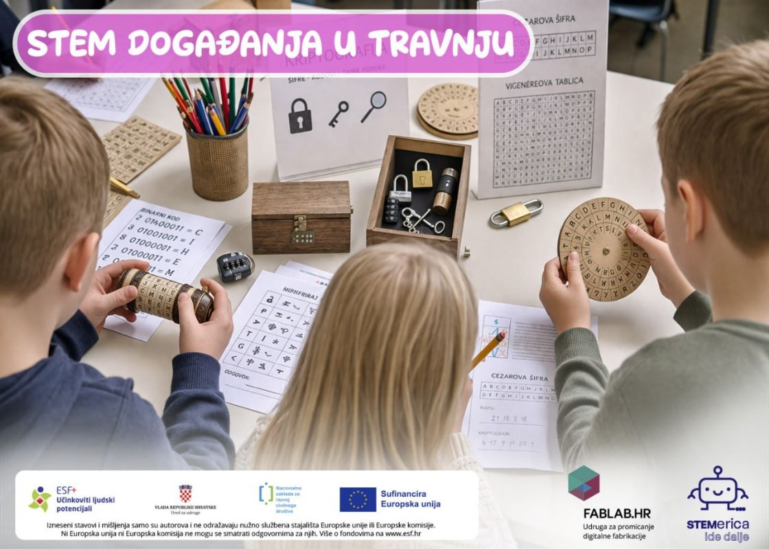 U sklopu projekta "STEMerica ide dalje”, u travnju se diljem Hrvatske održava niz zanimljivih i interaktivnih STEM događanja namijenjenih djeci, mladima, roditeljima i svim zainteresiranim građanima. Kroz kreativne radionice i javne manifestacije sudionici će imati priliku upoznati znanost, tehnologiju, inženjerstvo i matematiku na pristupačan, praktičan i poticajan način.