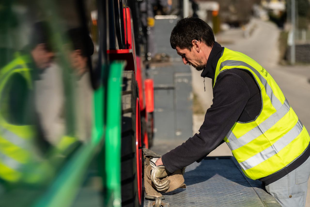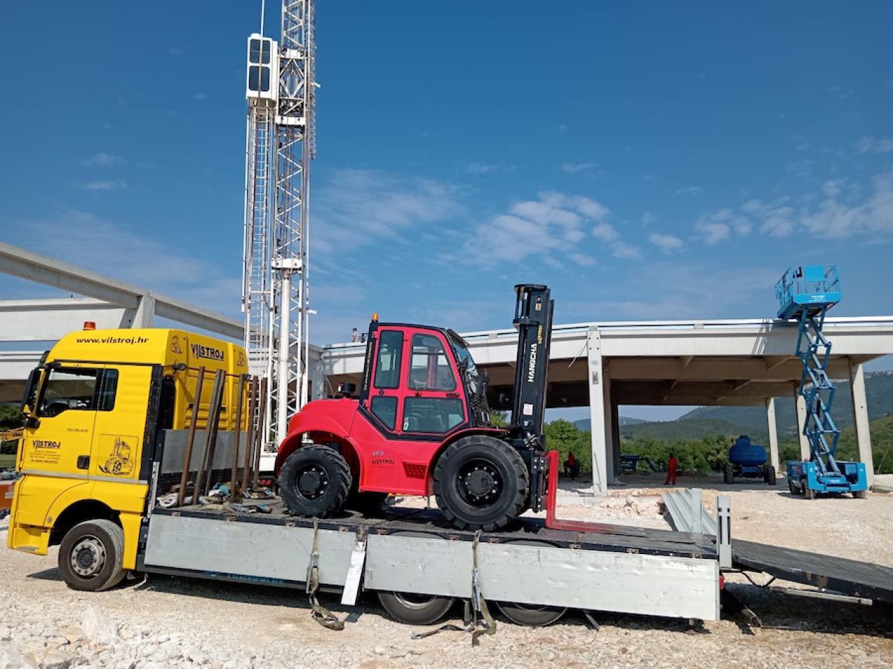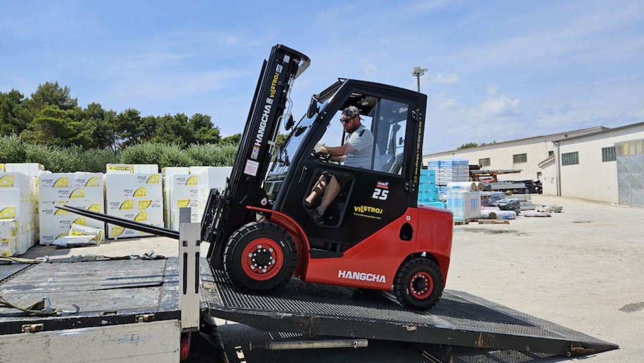 - Prijevoz viličara i strojeva specijalnim vozilima do 30 tona, s rampama i vitlima za sigurno ukrcavanje